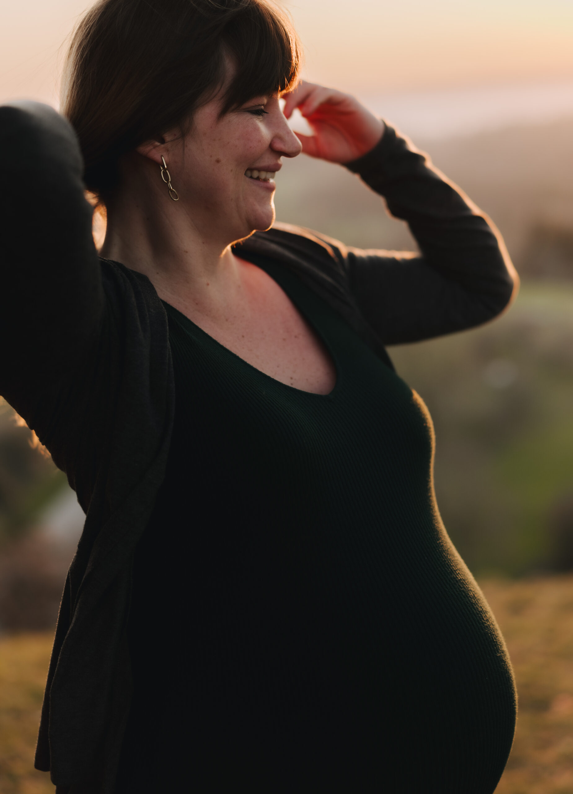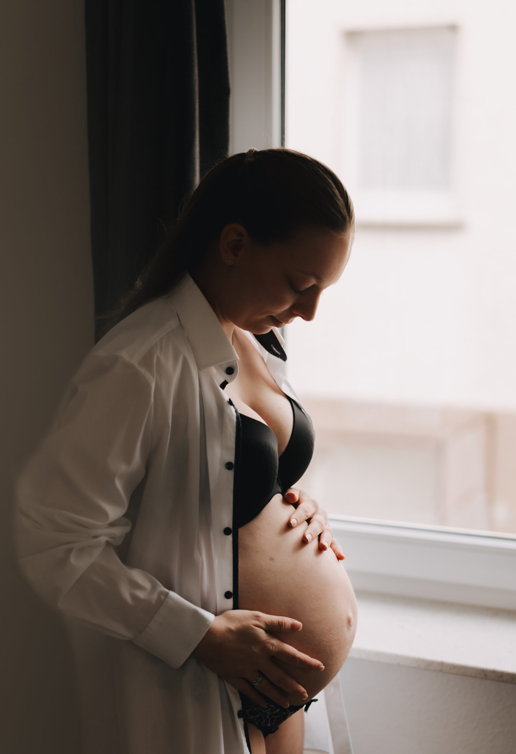Du stehst noch zwischen der „alten“ Version von dir als Frau und der Transformation in die Rolle der Mama. Dein Babybauch wächst und dein Kopf versucht hinterherzukommen. Ich halte diese ganz individuelle Verwandlung für dich fest, der Moment kurz bevor alles anders wird.